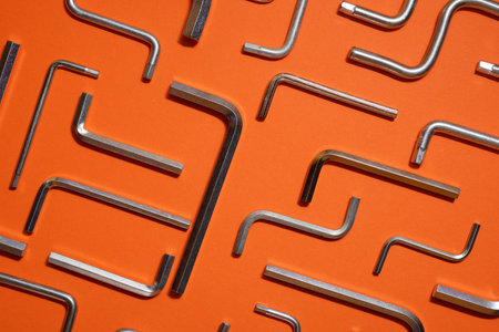 Allen keys on an orange table.