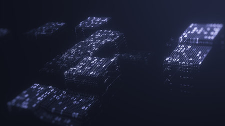 Hexadecimal big data digital code. Futuristic information technology concept. Computer generated 3D rendering illustration with DOF