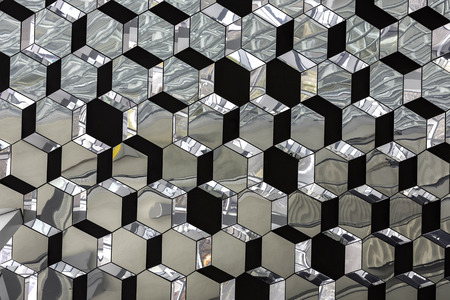Bright shiny abstract hexagon mosaic wall elevation on Porto terminal building