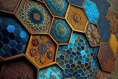 Unique hexagonal tile honeycomb pattern showcasing geometric and natural design features