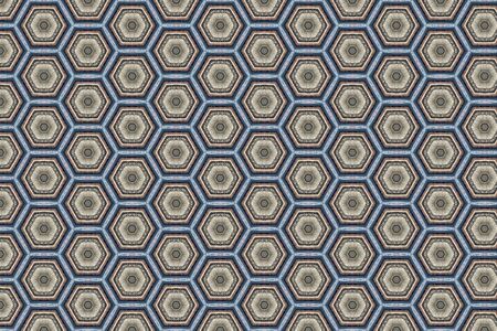 A close up view of a hexagonal tile arrangement showcasing varying shades of brown black and white on a textured surface.