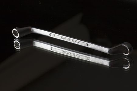 Steel combination spanner wrench on black bacground