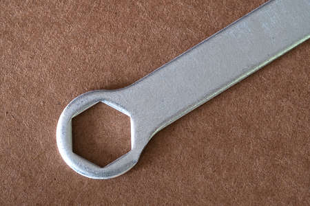 hex wrench for loosening the nuts, the metal key on a brown background
