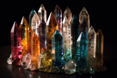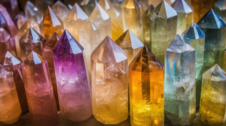 This image showcases a stunning array of colorful crystals, featuring unique shapes and vibrant hues, ideal for showcasing natural beauty in art and decor projects.