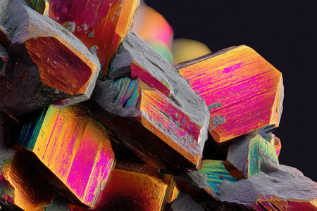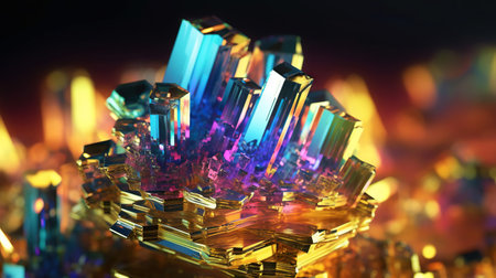 Amazing bright and shiny Bismuth crystal cluster background. Jewel mineral detailed macro. Generative AI.