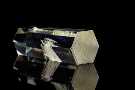 Close-up of blue quartz crystals on a black background