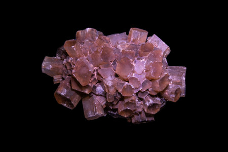Close-up of crystalline aragonite crystals isolated on black background.