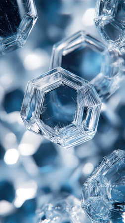 Delicate ice crystals showcase intricate geometric patterns in a mesmerizing display