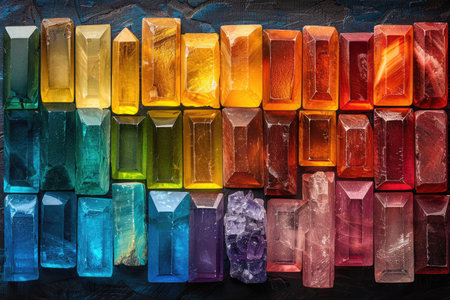 A stunning arrangement of colorful gemstones and crystals displaying a spectrum of vibrant hues with captivating light effects and textures.