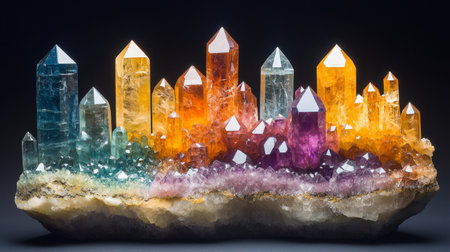 Colorful Quartz Crystal cluster gemstone. Beautiful crystals arrangement