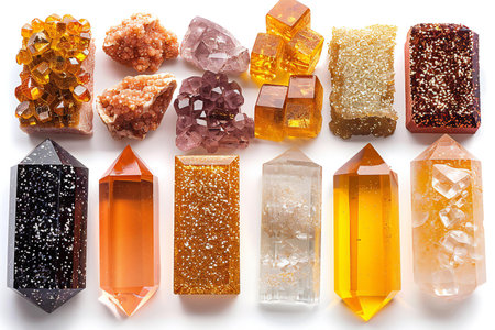 rows of crystals neatly arranged by type, created with generative ai