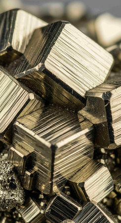 Polished pyrite crystals with metallic luster