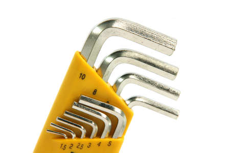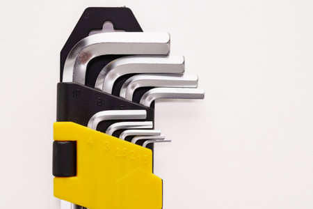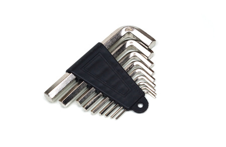 Clean hex key wrench set on white background