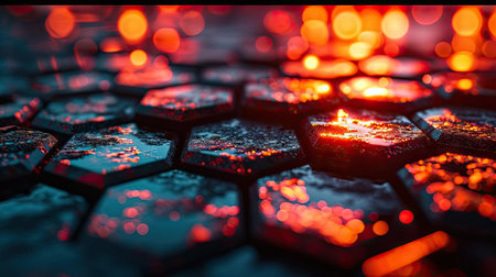 Background of hexagons illuminated by colored light.