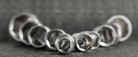 socket heads, socket wrench, screwdriver close-up