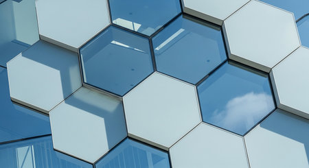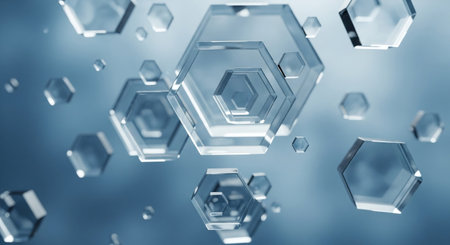 This image features a modern abstract pattern of hexagons in cool blue tones, creating a sleek and sophisticated design suitable for various creative projects.