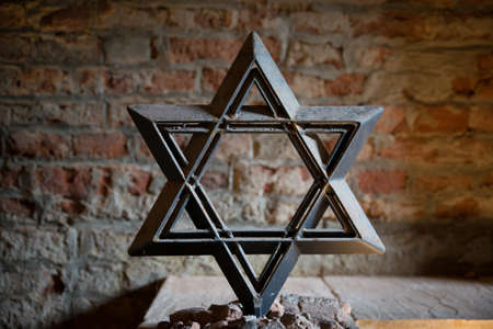 Iron star of david on a fence in the old jewish quarter in Krakow, Poland