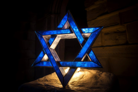 Vibrant stained glass star of david for jewish holiday celebrations and symbolism