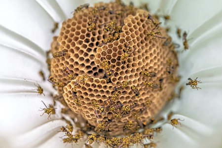 Wasps polist. The nest of a family of wasps which is taken a close-up.