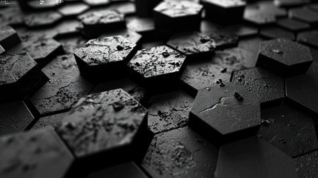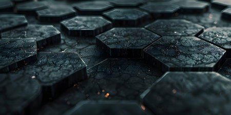 Close-up of a dark geometric pattern with textured hexagonal shapes, creating a modern and sophisticated abstract design.