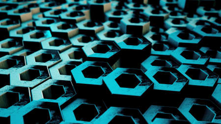 abstract dark petrol blue futuristic honey comb surface technology concept 3d render illustration