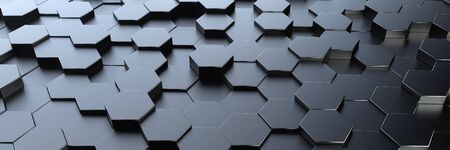 Abstract luxury background with black hexagons.Background with hexagons at different levels. Futuristic abstract background. 3d rendering.