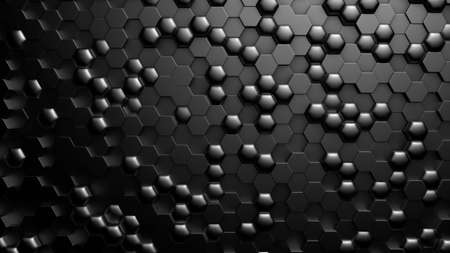 Silver black metallic background with hexagons.3d rendering, 3d illustration.