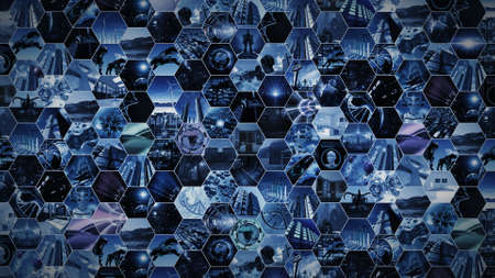 3d illustration of abstract geometric background with hexagons and honeycombs