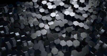 Abstract background with shiny metallic hexagons. 3d render illustration.