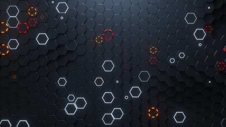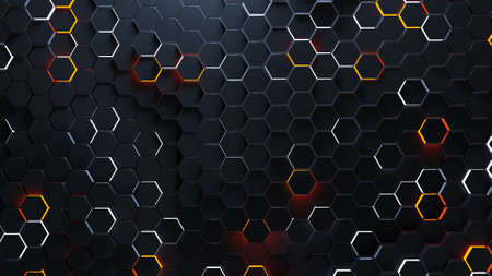 Abstract background with glowing hexagons. Futuristic technology honeycomb mosaic. 3D render illustration