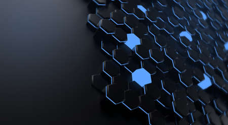 Abstract luxury background with blue and black hexagons. Background with hexagons at different levels. Futuristic abstract background. 3d rendering