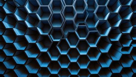A striking abstract pattern featuring blue hexagons with varied textures. This modern design is ideal for use in digital projects or wallpapers.