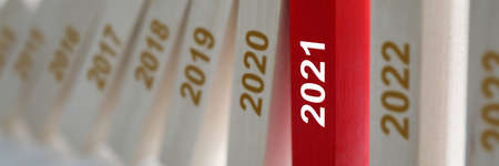 Wooden blocks listing years rested in red since 2021. Development and planning of small and medium-sized businesses and career concepts