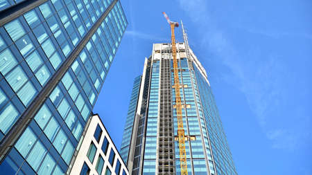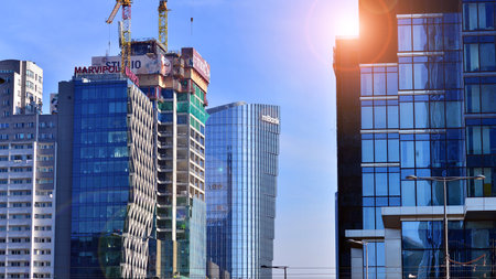 Warsaw, Poland. February 22, 2025. Business center with skyscrapers. Construction of the Studio skyscraper.