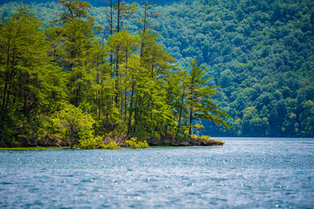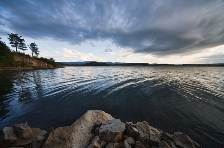 Tara National park ,lake Zaovine during sunset. Nature outdoors travel destination, Tara mountain, Serbia