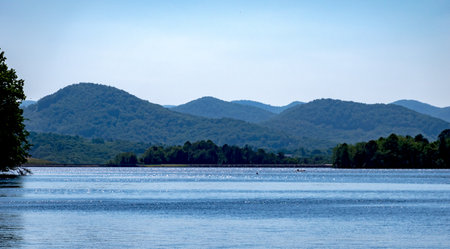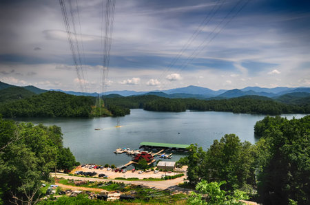 View from South Holston Dam over Holston Lake yields a beautiful landscape of water, islands and mountains.