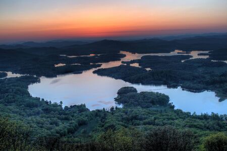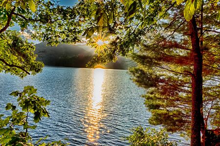 Julian Price Memorial Park, North Carolina, USA - June 14, 2018: Sunset at a lake in Julian Price Memorial Park National Park