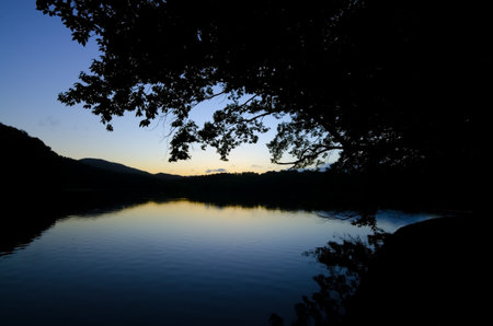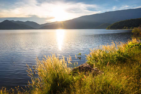 Sunset at reservoir of Khao Luang, Khiri Mat district, Sukhothai, Thailand