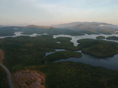 Dramatic and beautiful aerial view Lake of Beris or Tasik Beris during morning at Sik, Kedah, Malaysia