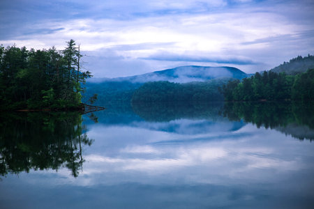 Storm clouds and mountains reflecting in Unicoi Lake, at Unicoi State Park, Georgia.
