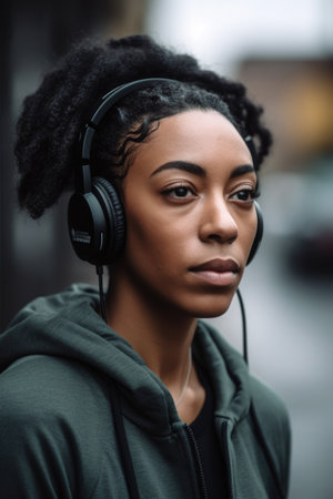 cropped shot of a young woman listening to music while out for a run, created with generative ai