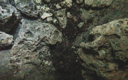 This captivating underwater view showcases rocky formations with vibrant water currents illuminated by morning light.