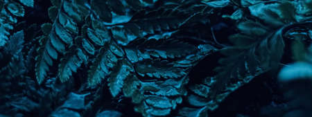 Blue plant leaves at night as surreal botanical background, minimal design backdrop