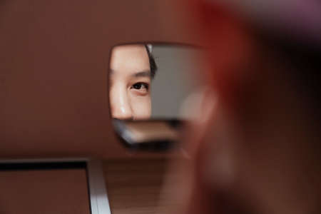 Scary eye peek out of strip lines abstract concept of unhappy vision minimal comeliness