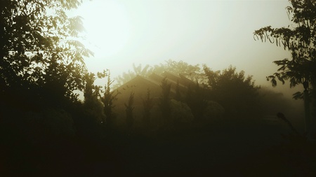 Mist over the summer mountains, dark color