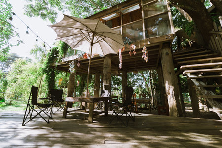 Jungle cafe thailand forest. vacation restaurant. Generate AI
