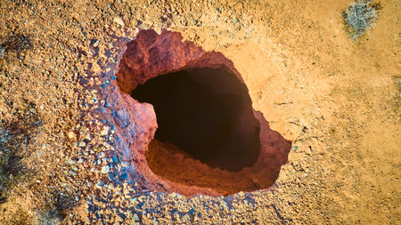 Aerial Desert Sinkhole and Rocky Terrain in Remote Nevada