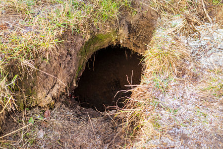 Rat hole in the ground with natural background