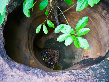Old abandoned open sewer well without manhole