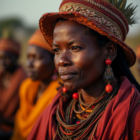 An AI-generated illustration of African women wearing tribal headpieces with colorful flowers